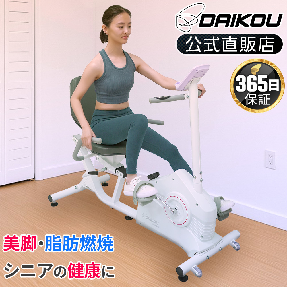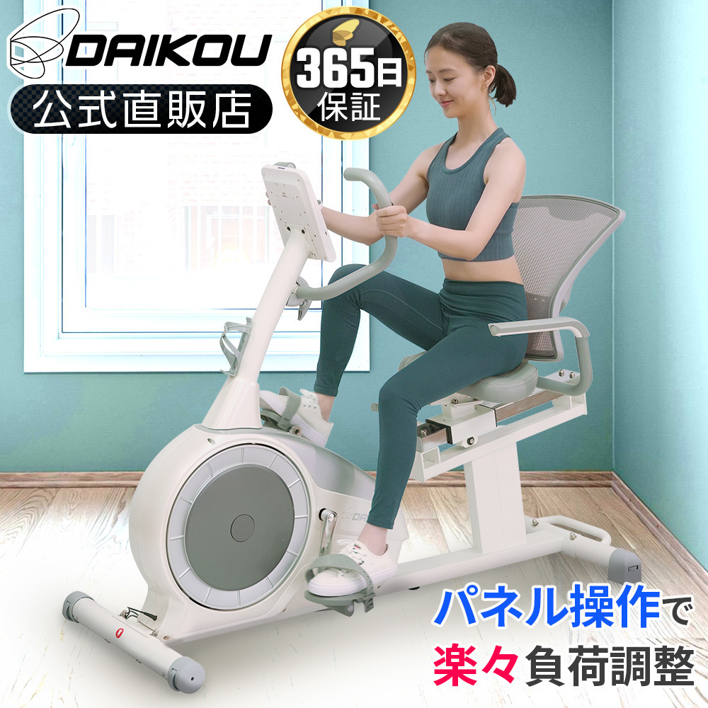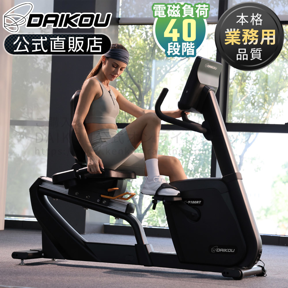 背もたれシート式フィットネスバイク。時間無制限で使用可能な業務用品質。電磁制御システムによる、より静かでよりスムーズな40段階負荷調整。