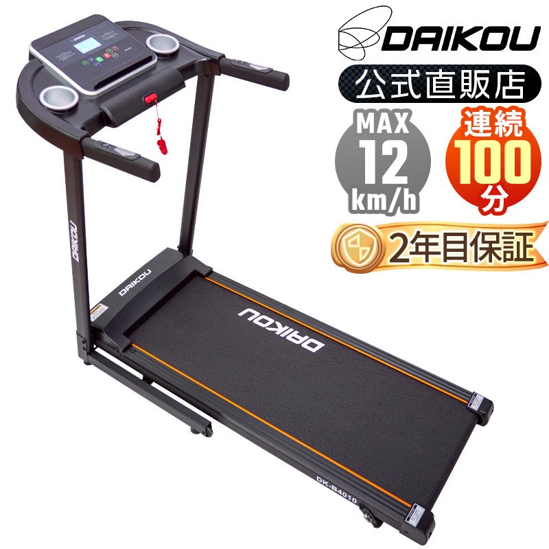 ユニークな折りたたみ構造の省スペース設計。「インターバルラン」「脂肪燃焼」等、目的に合わせた自動プログラムを搭載。連続使用時間120分。心拍測定は付属のチェストベルト式。