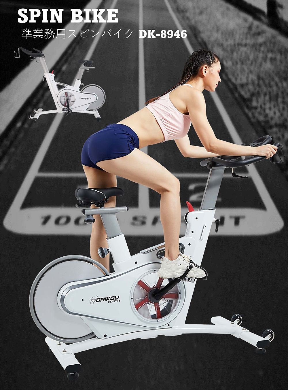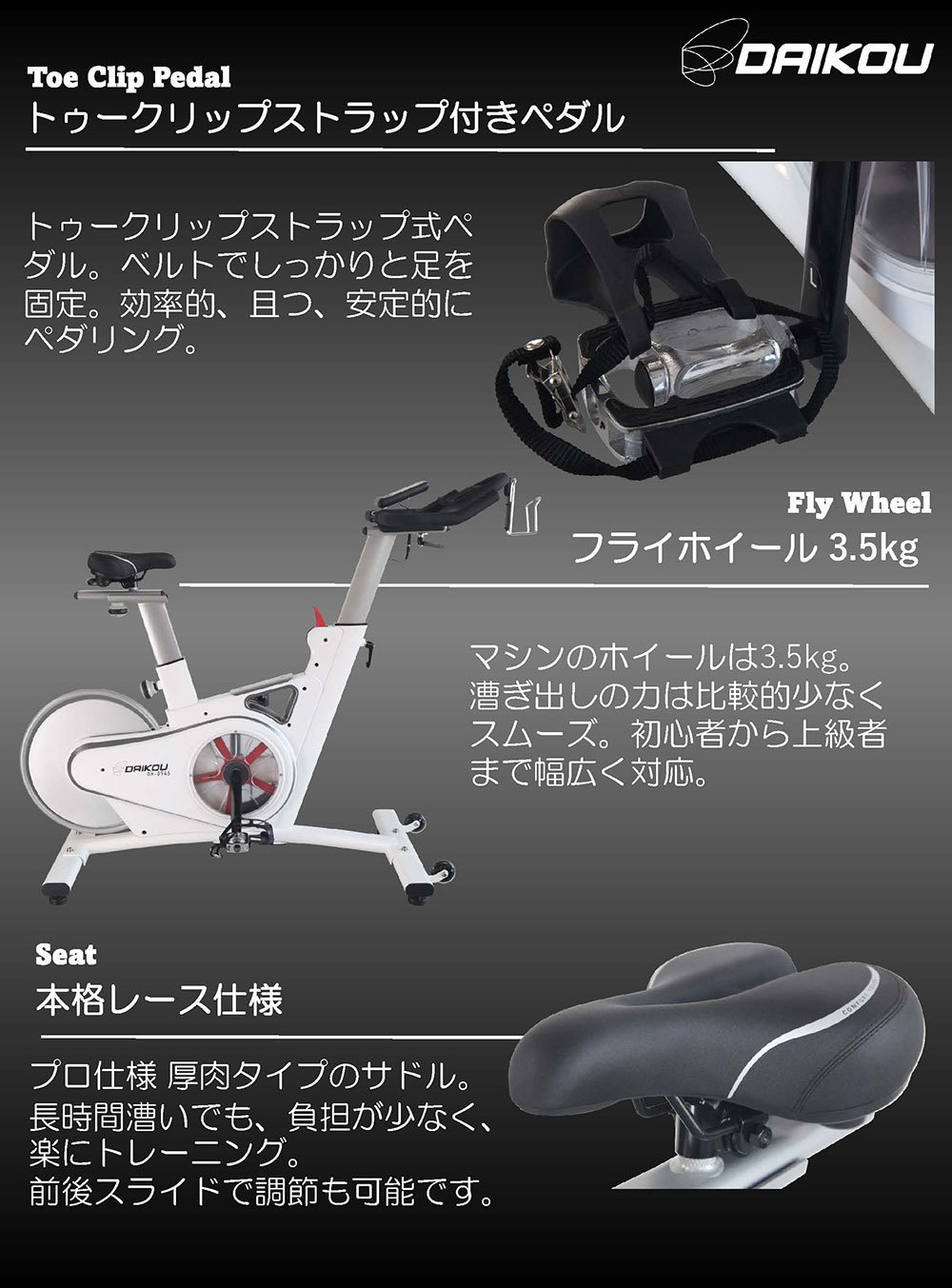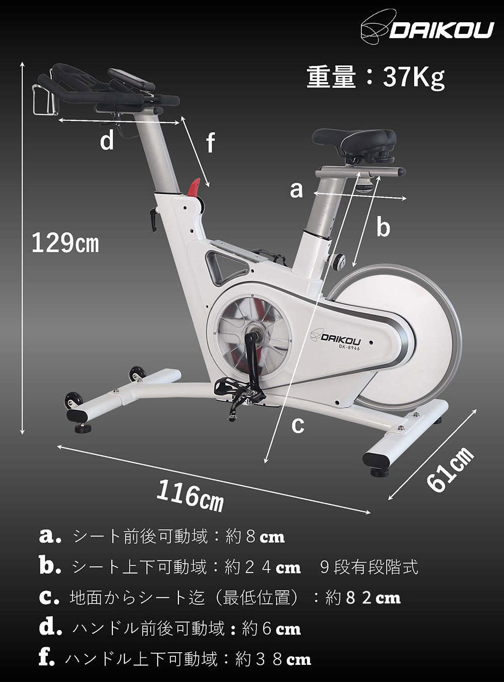 静音マグネット負荷式フィットネスバイク。純アルミニム素材のホイールに依り、本体重量37kgの軽量さと最大負荷403Wのペダルの重さを両立。