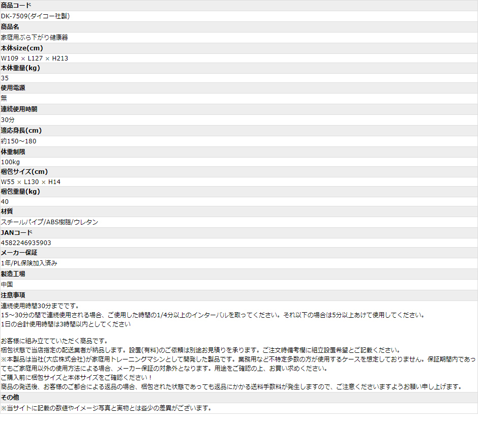 DK-7509はダイコー社が開発する家庭用ぶらさがり健康器の最新モデルです。
