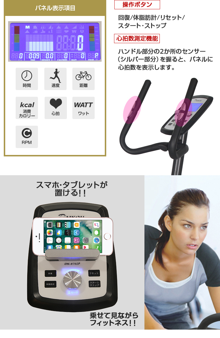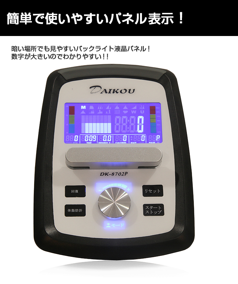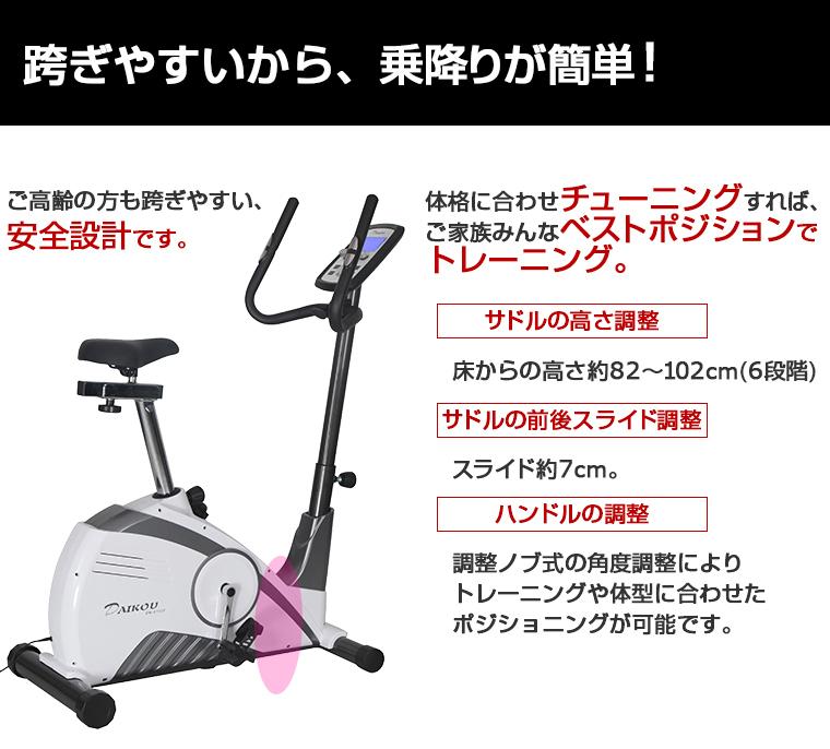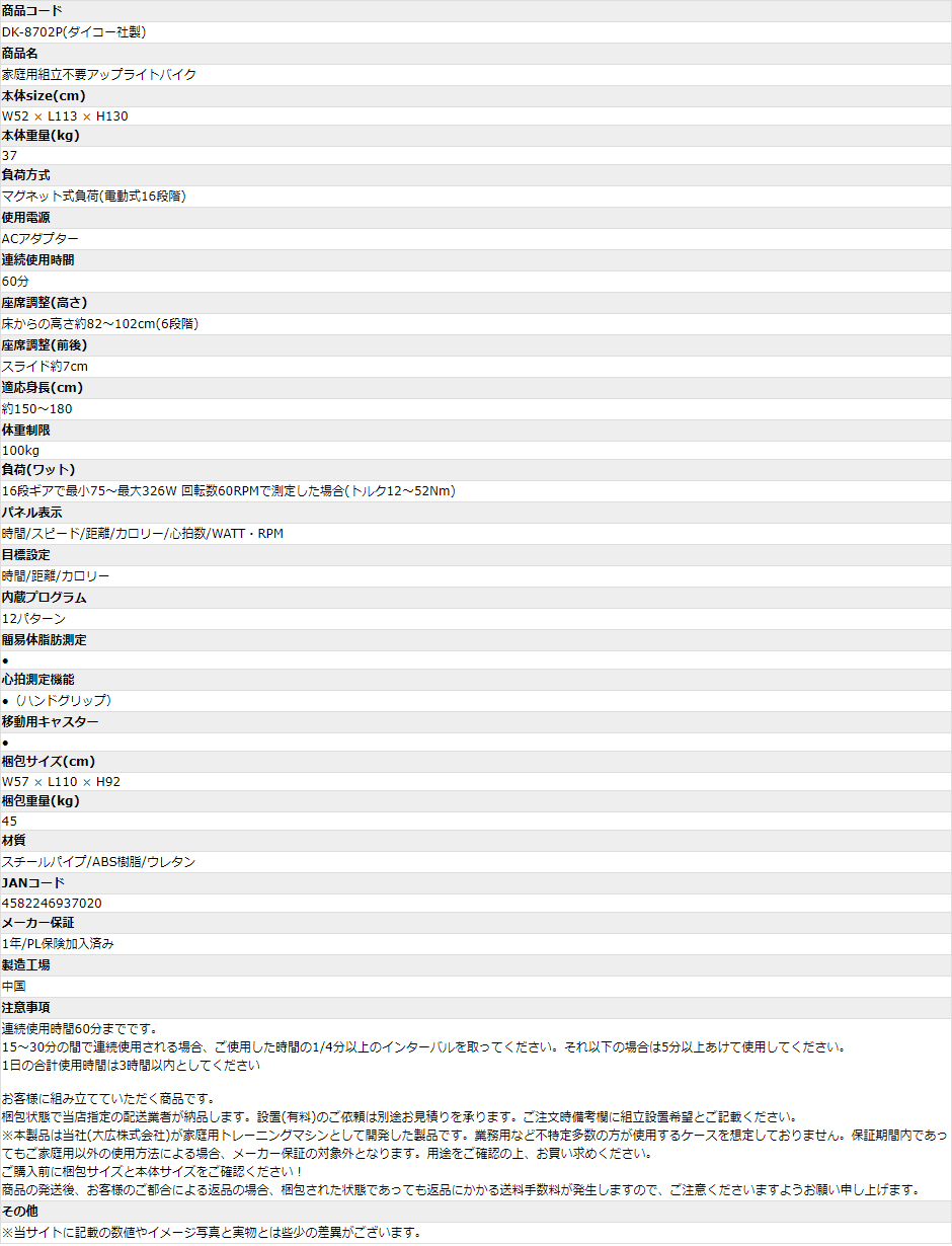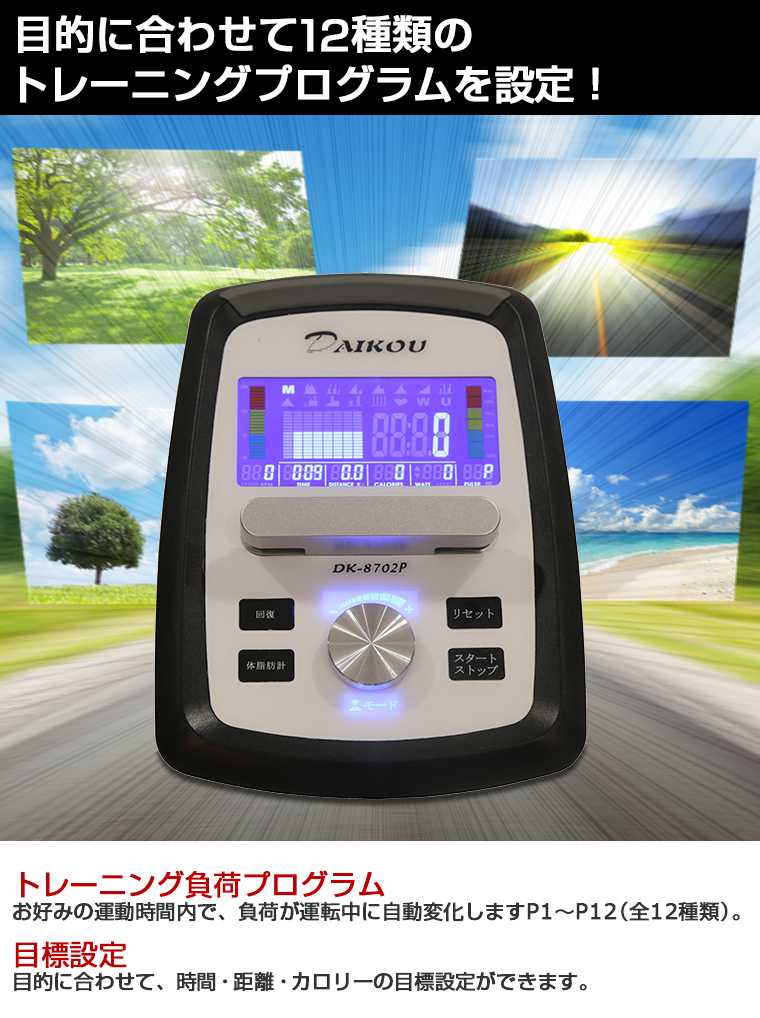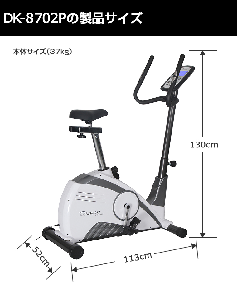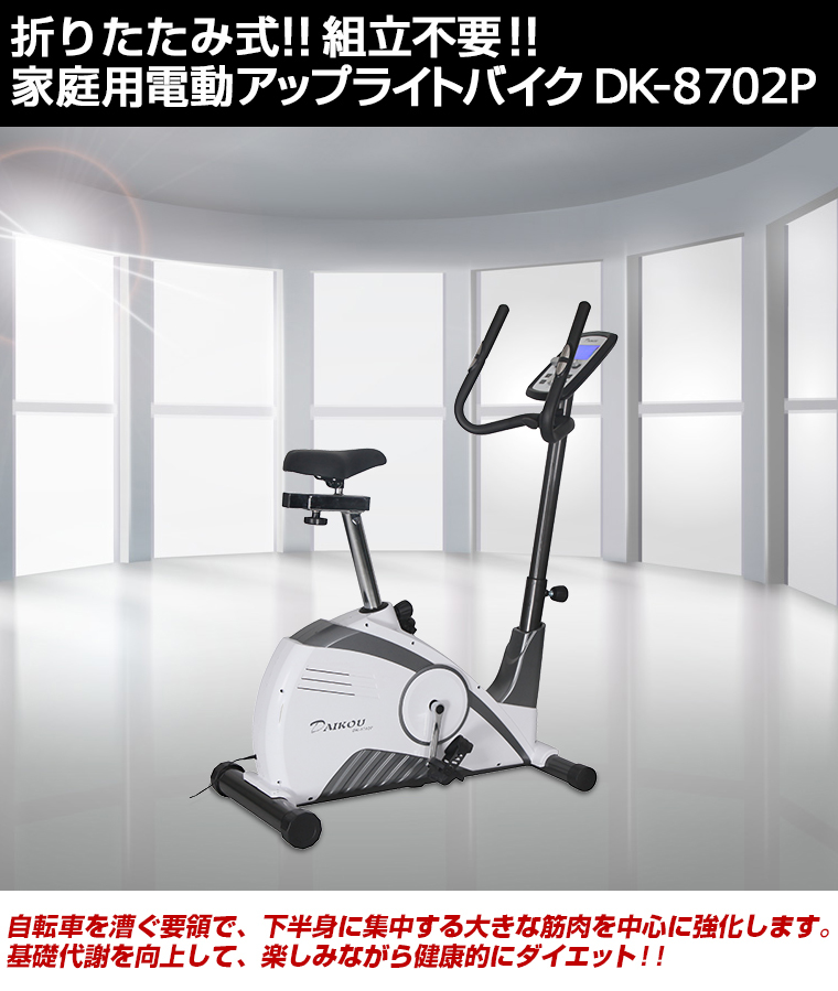 DK-8702Pは、フィットネスバイク開発メーカーであるダイコー社が販売保守する家庭用組立不要アップライトバイクの最新モデルです。サイクリング気分で健康的にダイエットを!