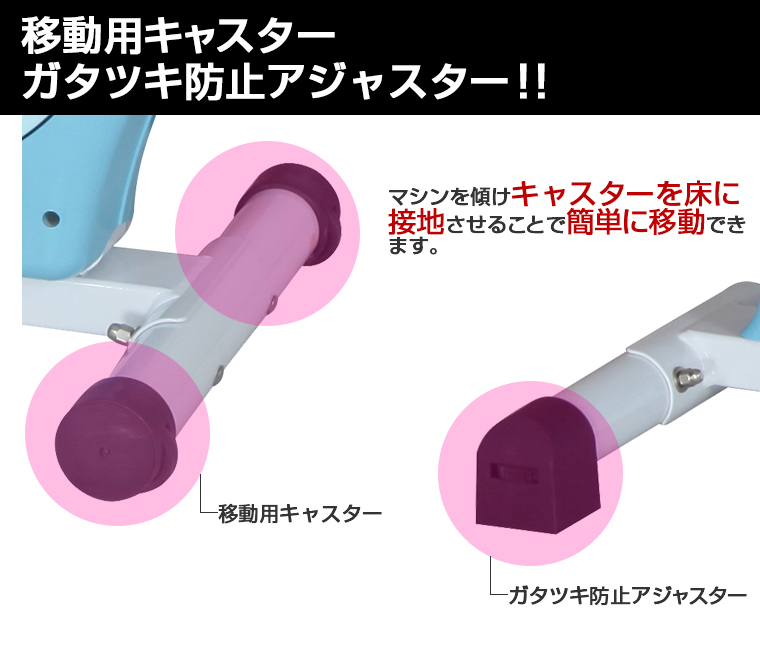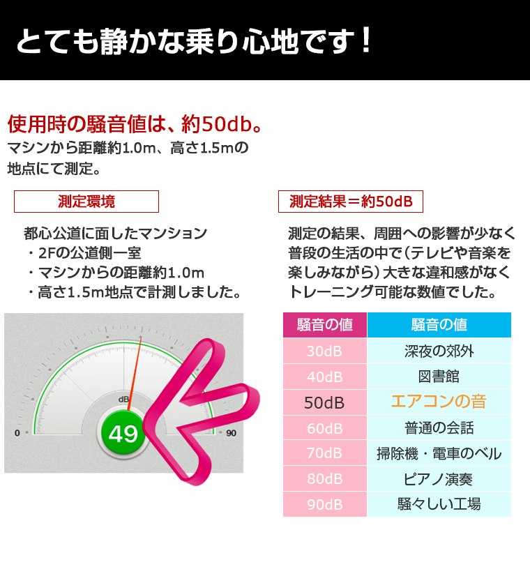 | 梱包サイズ(cm) | 使用電源 | 移動用キャスター | 心拍測定 | ガタツキ防止 |