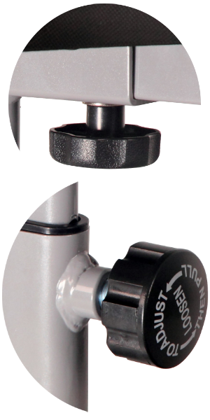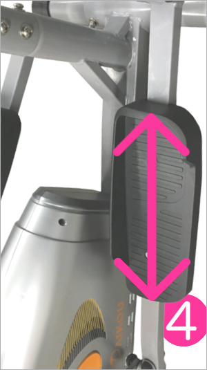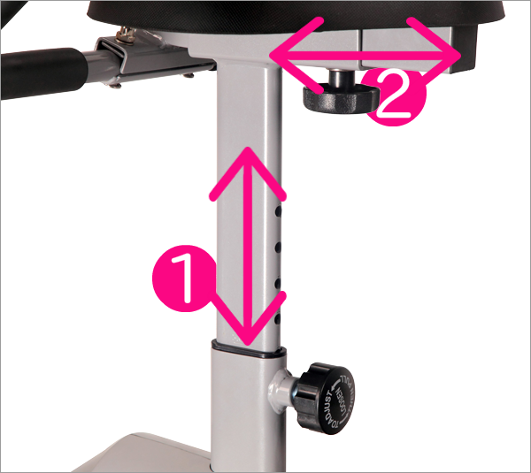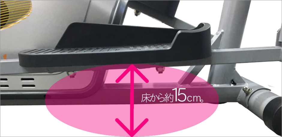 4か所のポジション調整で様々な体格の方やトレーニングポジションに対応。適応身長は 約150-180cm。トレーニング効果も広がります。マシンのボディと支柱との間に適度な空間があり、ステップも約15cmの高さまで下がるので、女性やお年寄りの方でも跨ぎやすく安心してご利用いただけます。