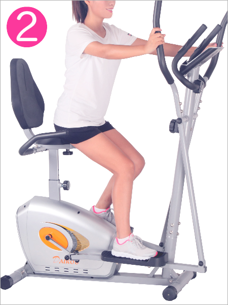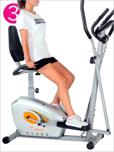 ダイコーの最新フィットネスバイクDK-8509Hは、3種類のトレーニングポジションがとれる家庭用エリプティカルバイク。
