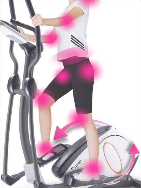 ハンドルとステップの動きが連動しており、意識しなくても自動的に効率の良い全身運動が可能。ハンドルを持つ位置により動きの大きさが変わり、下半身のみのトレーニングから、可動域の大きいトレーニングかで幅広く対応。リハビリから体力向上トレーニングまで様々な目的の方にご好評いただいています。
