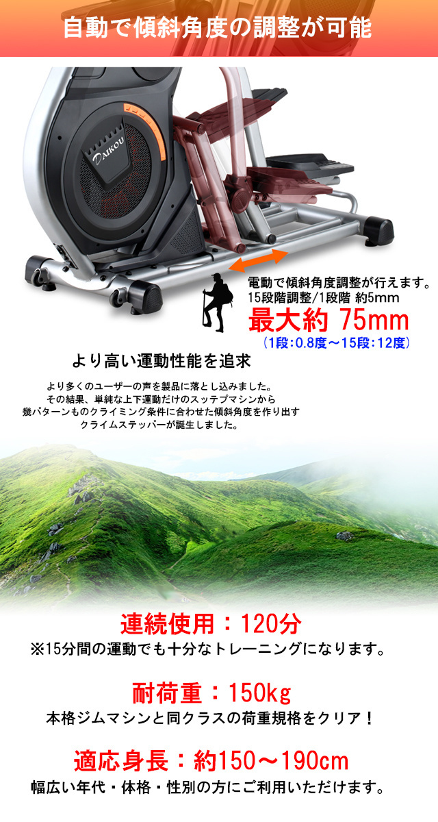 室内での有酸素運動に最適な準業務用クライムステッパーです。