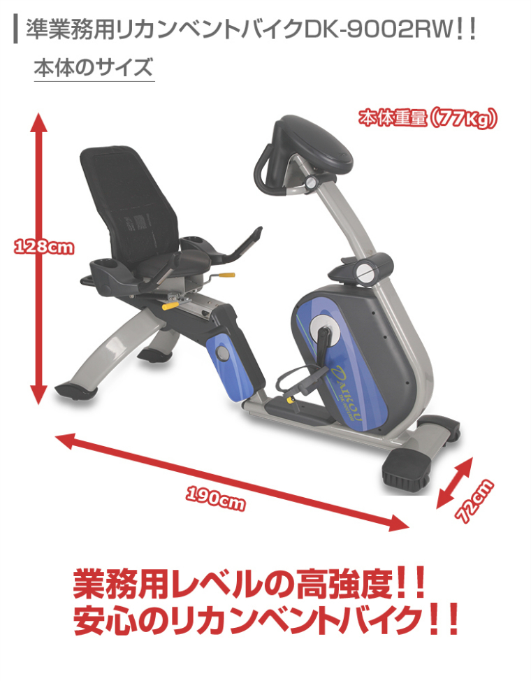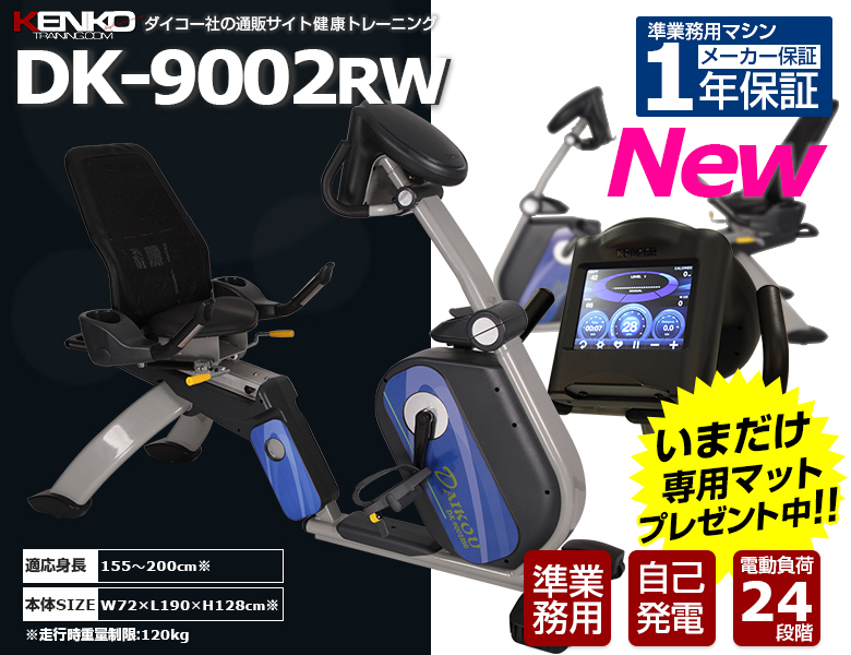DK-9002RWは、リカンベントバイクのダイコー社が開発する準業務用仕様の最新モデルです。リクライニングは様々な体格に柔軟に対応します。