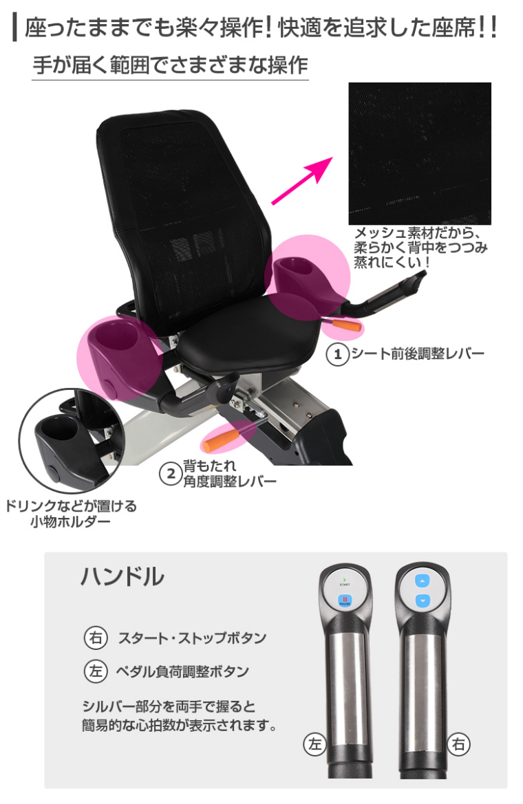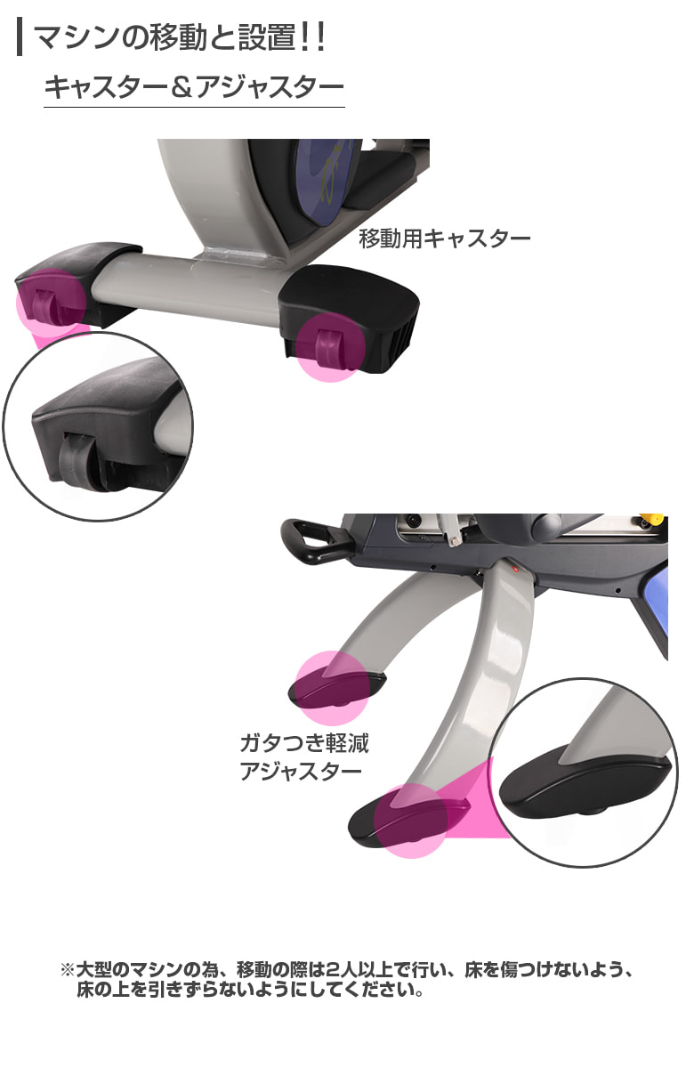 | 梱包重量 | - | 移動用キャスター | 心拍測定 | ガタツキ防止 |