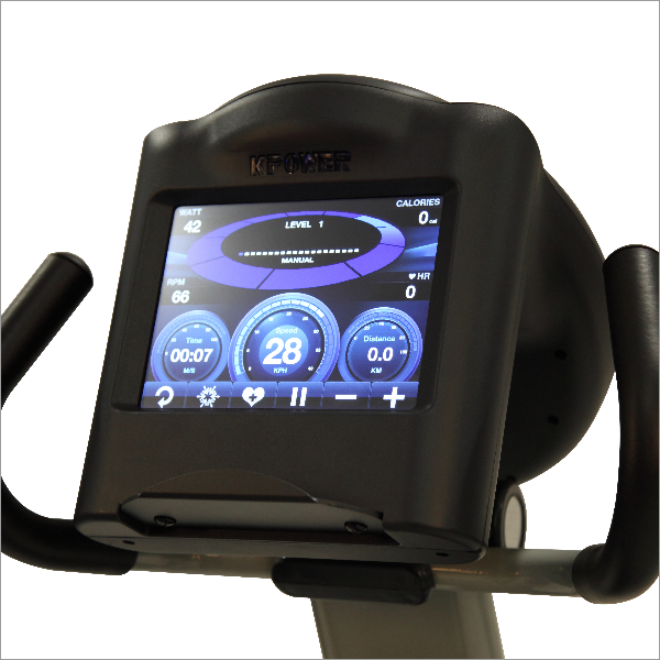 準業務用リカンベントバイクDK-9002RWの最新パネルは感覚的な操作でもトラブルなくトレーニングをエスコートします。