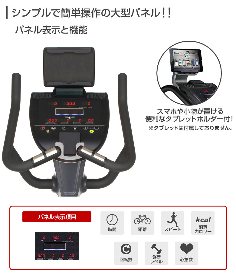 | 梱包重量 | パネル | 移動用キャスター | 心拍測定 | ガタツキ防止 |
