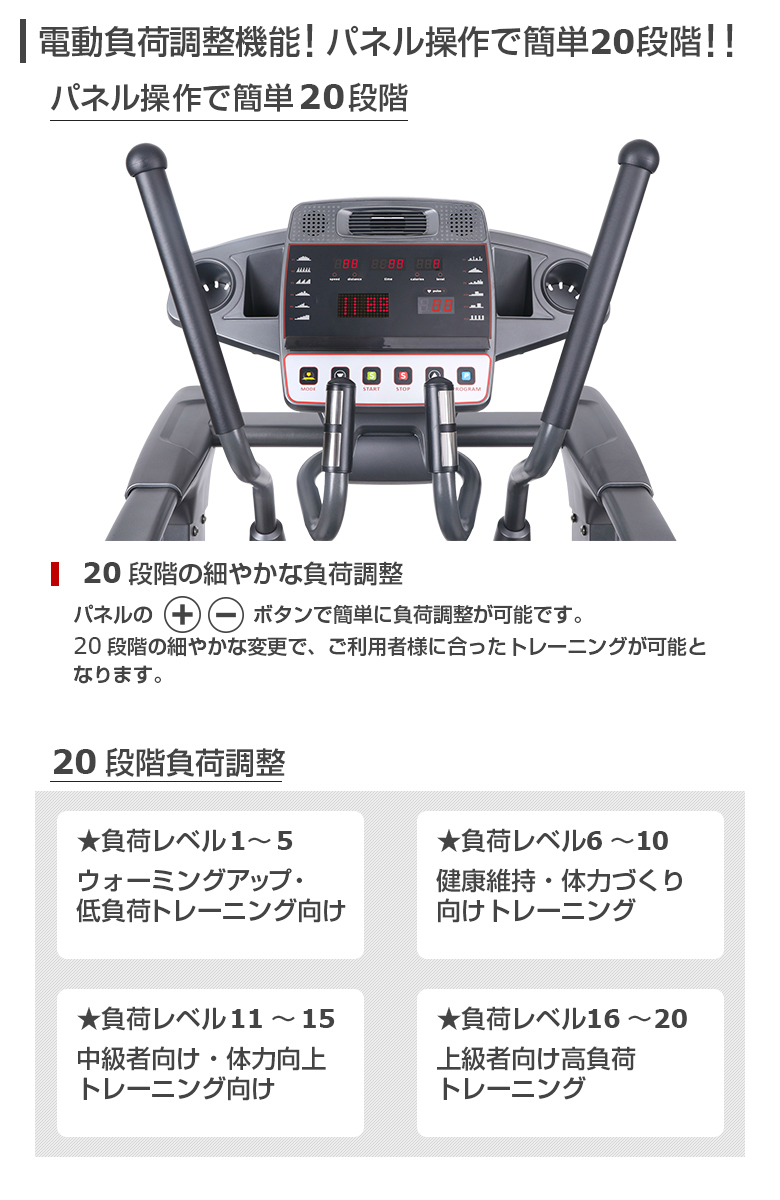 | 144kg | 電動20段階 | 準業務用 | 120kg | カロリ/心拍/スピード |