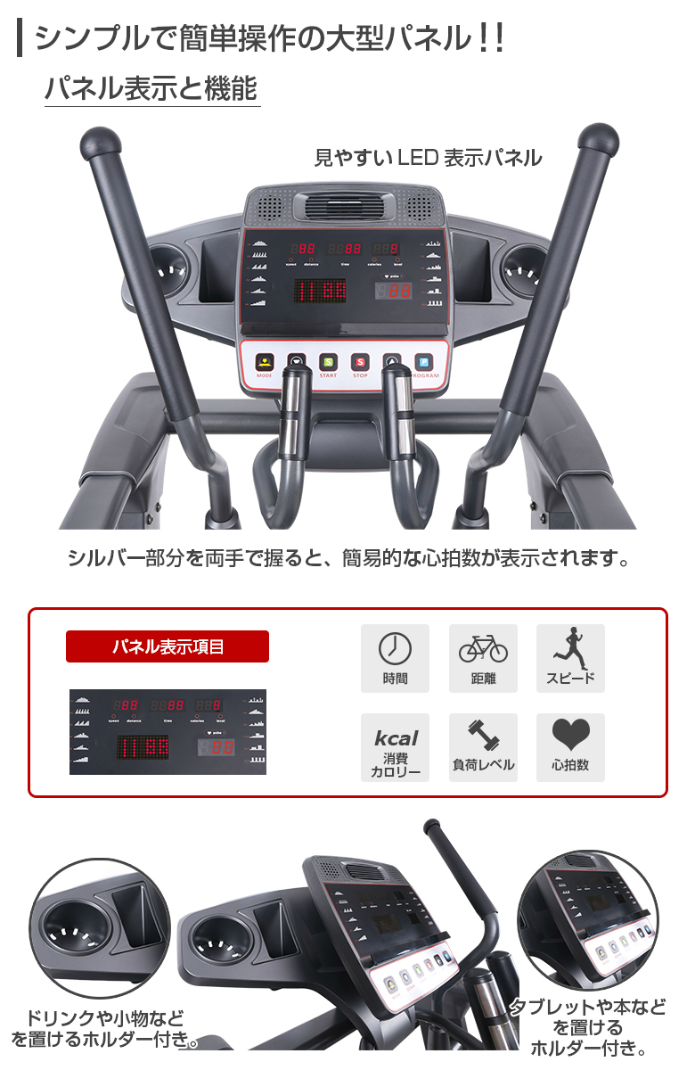 | 梱包重量 | パネル | 移動用キャスター | 心拍測定 | ガタツキ防止 |