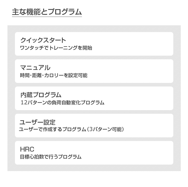 | スチールパイプ/ABS樹脂/ウレタン | - | カラー液晶タッチパネル | --- | 自動負荷変化*12ptn |