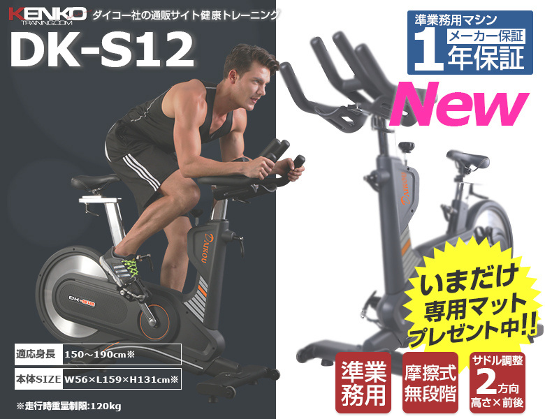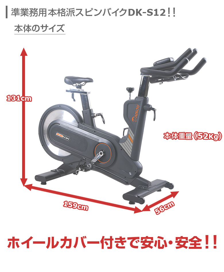 本格派向けスピンバイクDK-S12は、フィットネスバイク開発メーカーのダイコー社が販売保守する準業務用仕様の最新モデルです。