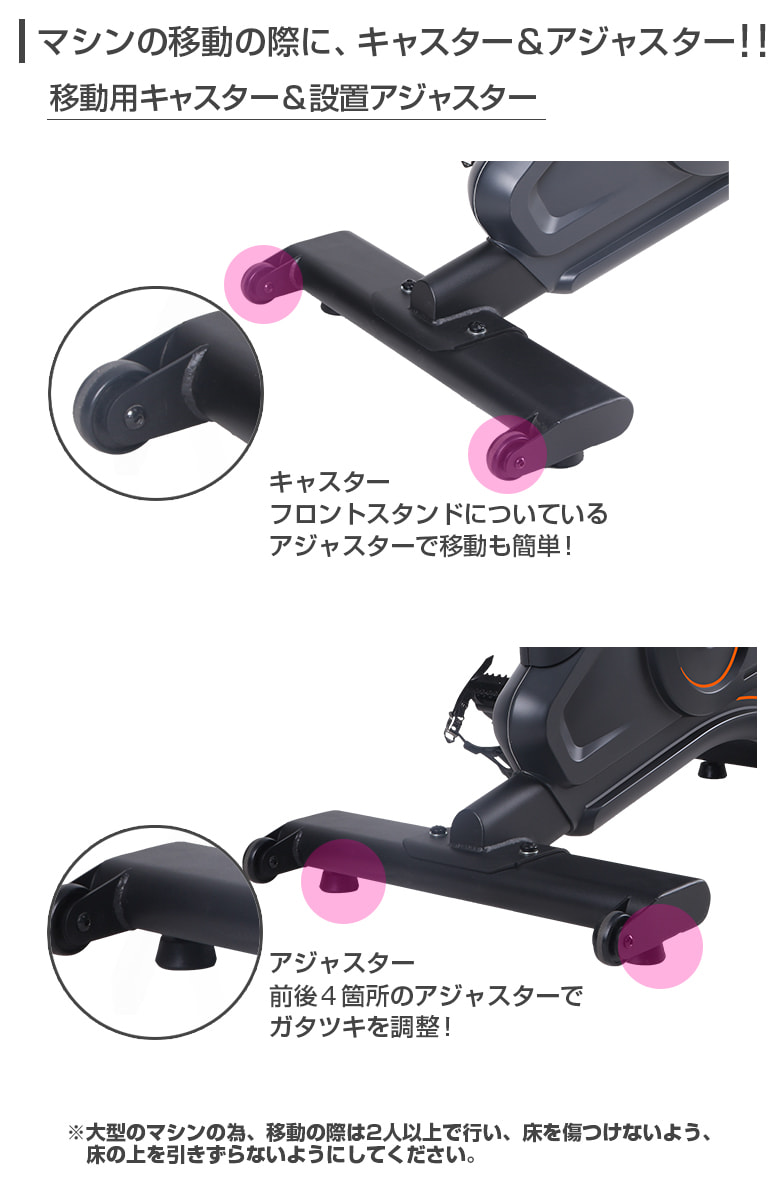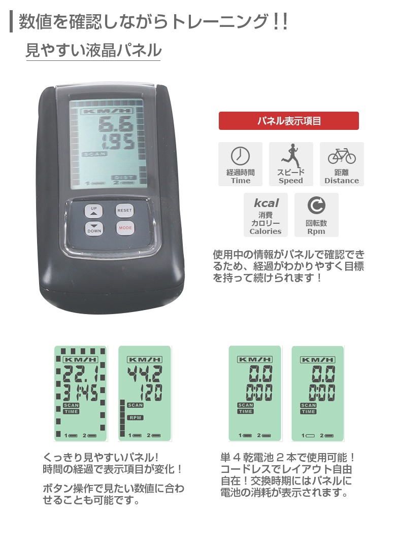 | 梱包重量 | パネル | 移動用キャスター | 心拍測定 | ガタツキ防止 |
