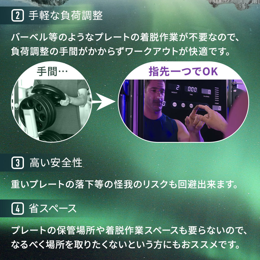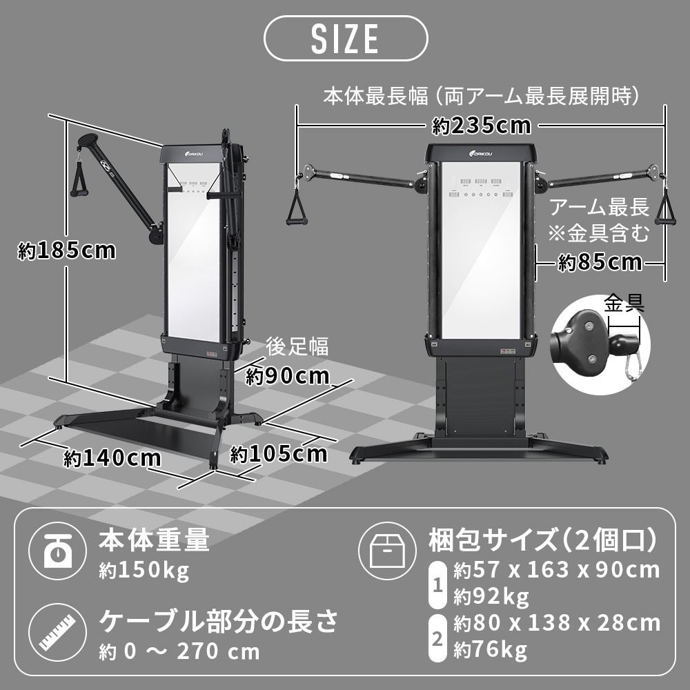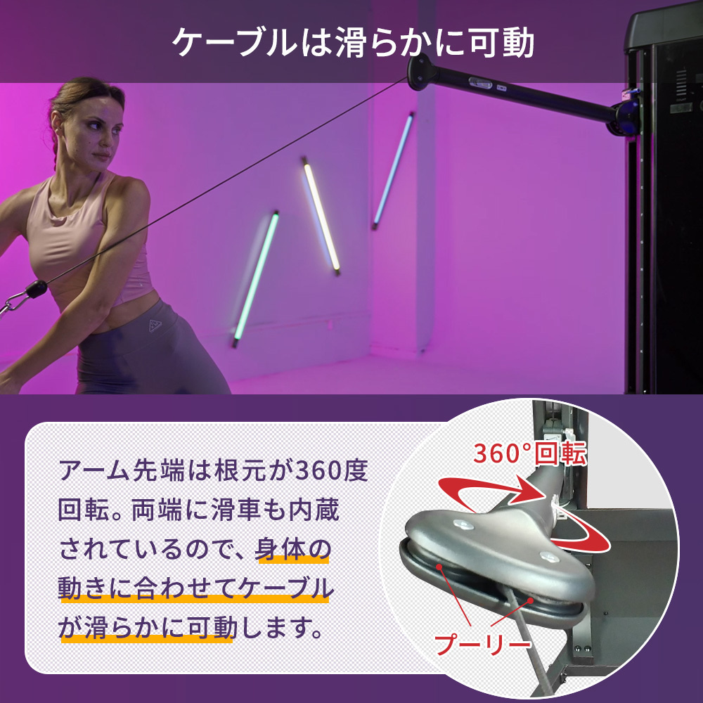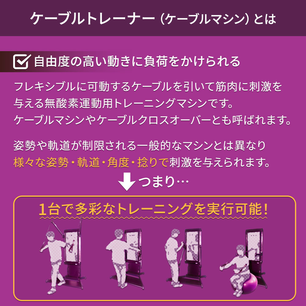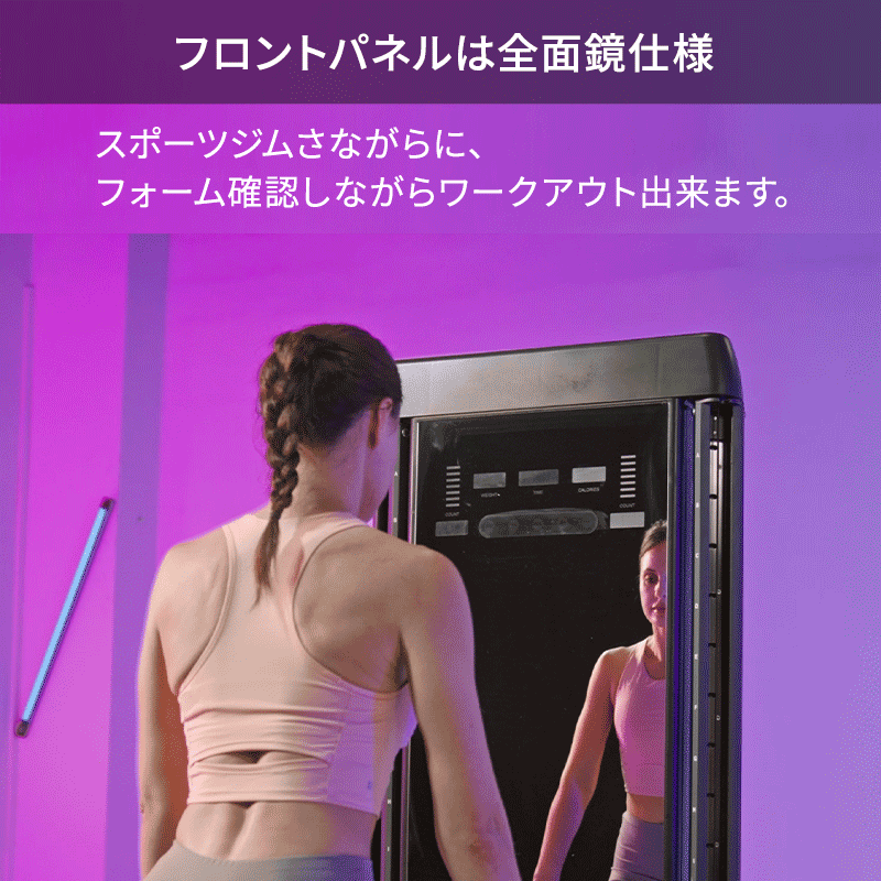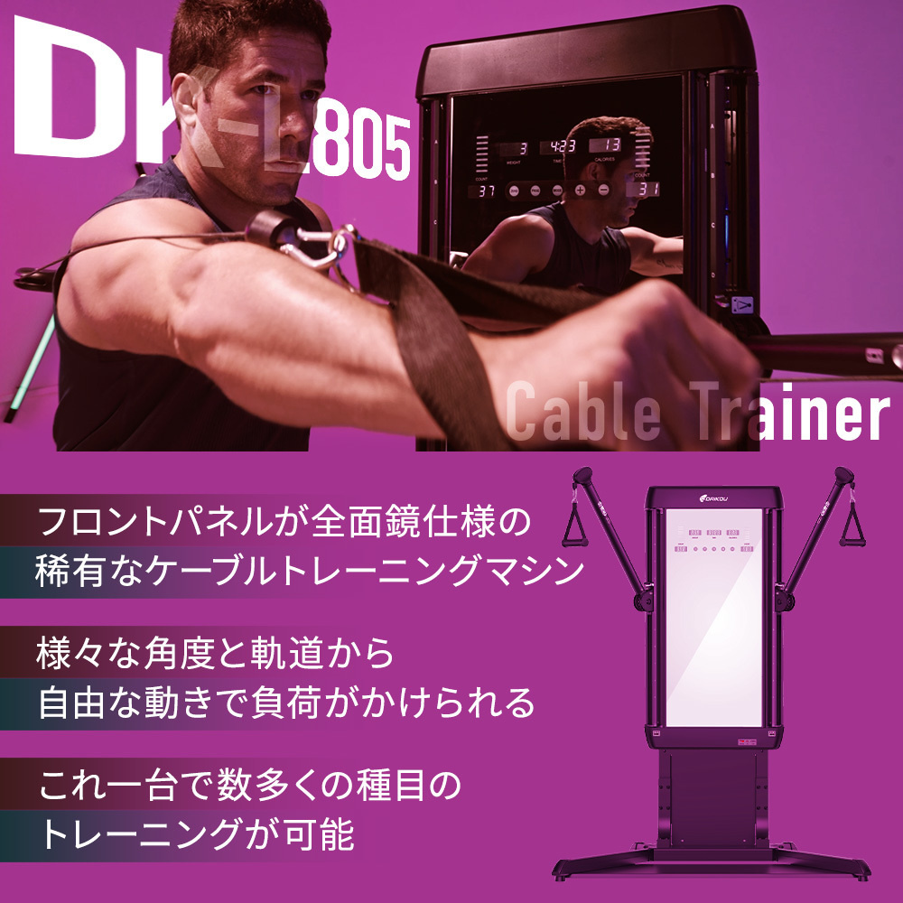フロントパネルが全面ミラー仕様のケーブルトレーニングマシン。